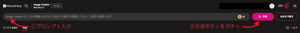 プロンプトを入力し、作成ボタンを押すだけ!