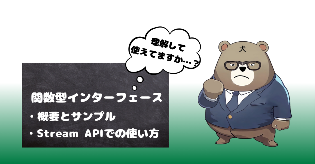 関数型インターフェイスとは、抽象メソッドを1つだけ持つインターフェイスのことです。@FunctionalInterfaceアノテーションを使用することで、意図的に関数型インターフェイスとして定義でき、複数の抽象メソッドを持たないことをコンパイラが保証してくれます。
